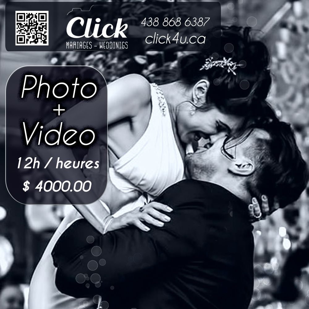 Limited availability. Photo & Video by clickphotos.ca DJ & Photobooth by funfiesta.ca For more information call 438-868-6387 ask for the promo Cle en main, from VIP wedding Planning